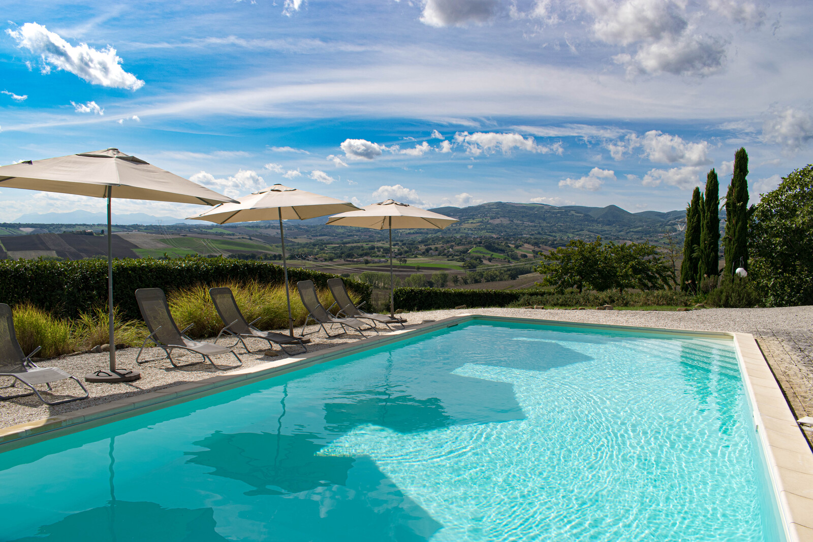 Je verblijft hier landelijk en rustiek, met privacy en vrijheid als uitgangspunt. Een verkoelend zwembad, een groene tuin en uitzicht over de heuvels van Le Marche. Gewoon ruimte om buiten te zijn en je eigen ritme te volgen.